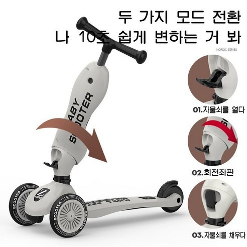 스타일닥터 2in1 킥보드 클래식 유아킥보드 접이식킥보드 수동 두발킥보드, 그레이, 1개 - 트라이