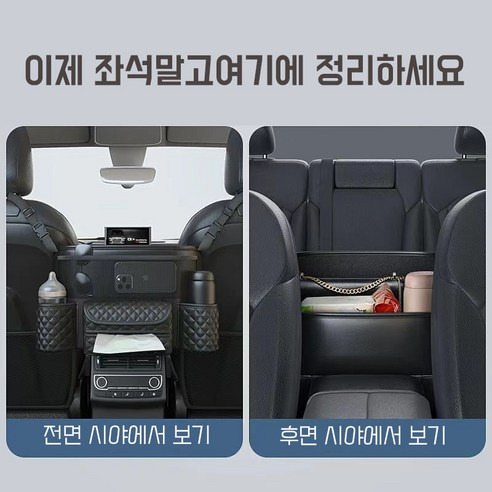 이 오거나이저는 여러 부분에 나누어져 있어서 실속 있게 사용할 수 있어요. 물병이나 음료수를 담을 수 있는 컵홀더와 더불어 작은 수납 공간도 있어요. 시트 위에 올려놓고 필요한 물건을 손쉽게 꺼낼 수 있으니 정말 편리하더라고요.